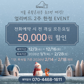자유로운 휴식을 즐길 수 있는 보엠의 객실입니다.