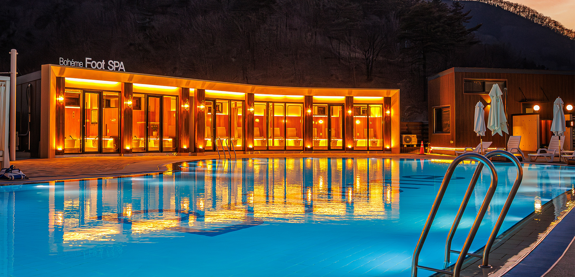 운영 시간 : 16:00~21:00 (20시 입장 마감) 위치 : 야외 대형풀빌라 앞 이용 비용 : 투숙객 1인 1만원 / 미투숙객 1인 1만5천원 이용 시간 : 1시간씩 이용 가능 좌석 수 : 총 20석 현장예약 및 현장결제